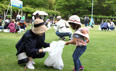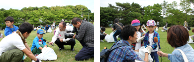 清掃活動は、主に芝生内の雑草を抜き取る作業を行いましたが、明け方に降った雨の影響で芝生広場の地面が柔らかく、参加した子どもたちからは「柔らかくてよくとれる」「斜めに引っ張ったらよく抜ける」など明るい声も上がりました。約1時間の清掃で、参加者各自が様々な工夫をしながら楽しそうに取り組む姿が印象的でした。