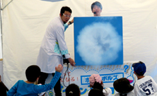 植樹を終えた後、参加者のほぼ全員が5年前に植樹したエリアを草刈りし、その間に子ども向けにサイエンスショーを行いました。 草刈りは1,200?と広い範囲に渡りましたが、ネイチャーおおさかの皆さまからのご指導のもと、多くの社員と家族が参加し、きれいに草を刈り終えることができました。サイエンスショーでは松竹芸能のボルトボルズに出演していただき、将来を担う子どもに科学に興味を持ってもらえるような面白い実験を通じて、子どもから大人まで楽しいひと時を過ごしました。
