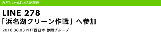 ホーム の中の 企業情報 の中の NTT西日本グループのサステナビリティ の中の みどりいっぱい活動報告 の中の LINE 278 「浜名湖クリーン作戦」へ参加