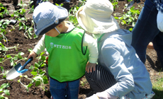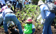 ご家族連れや子どもを中心に順次、植え付け作業を進め、幼い子どももスコップを片手に大人に負けじと一生懸命取り組みました。