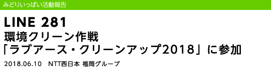 ホーム の中の 企業情報 の中の NTT西日本グループのサステナビリティ の中の みどりいっぱい活動報告 の中の LINE 281 環境クリーン作戦 「ラブアース・クリーンアップ2018」に参加
