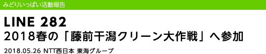 平成30年5月26日(土) 藤前干潟・庄内川・新川河口付近(名古屋市港区)を清掃する「2018春の藤前干潟クリーン大作戦」が開催され、NTT西日本東海グループ社員やその家族、退職者の計125名が参加しました。