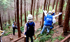 平成30年5月26日(土)、NTT西日本和歌山グループは、和歌山県が推進する「企業の森」事業の森林環境保全活動の一環として、田辺市龍神村にある「輝きの森」で間伐作業を実施しました。