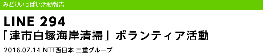 ホーム の中の 企業情報 の中の NTT西日本グループのサステナビリティ の中の みどりいっぱい活動報告 の中の LINE 294 「津市白塚海岸清掃」ボランティア活動