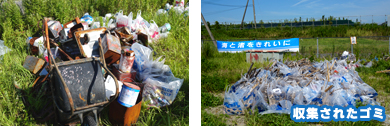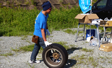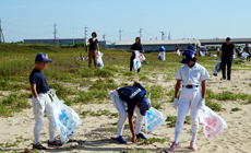 参加者は、海岸線に打ち上げられた漂着ゴミ、ペットボトル、空き缶のほか、タイヤや猫車などの大型ゴミを続々と運び出し、約1時間の作業で砂浜一帯はみるみるうちに綺麗になりました。