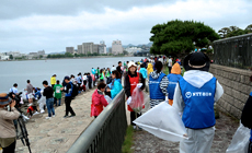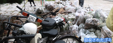 活動前までは小雨でしたが清掃が始まると雨も止み、参加者は宍道湖沿岸に打ち上げられたプラスチックやビニール、水草や流木などを回収しました。また、周辺の公園・道路脇ではペットボトルや空き缶などのゴミを拾い集め、活動を終えた頃には全体で12トン以上ものゴミが収集され、中海・宍道湖の湖岸が美しさを取り戻しました。