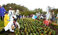 参加企業や団体は、社会貢献や環境保全、福利厚生事業の一環として、お花畑や花壇で苗の植え替えや除草などを行います。