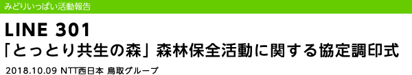 ホーム の中の 企業情報 の中の NTT西日本グループのサステナビリティ の中の みどりいっぱい活動報告 の中の LINE 301 「とっとり共生の森」森林保全活動に関する協定調印式