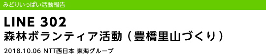 2018年10月6日(土)、愛知県豊橋市大岩町において、NTT西日本東海グループの社員やその家族、退職者など30名が参加し、森林ボランティアを開催しました。