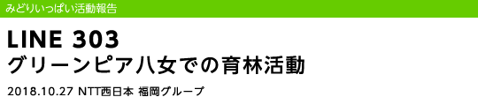 2018年10月27日(土)、NTT西日本福岡グループは福岡県八女市黒木町の「くつろぎの森 グリーンピア八女」にて育林活動を行いました。