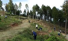 2013年11月と2014年5月に植樹した西洋石楠花(シャクナゲ)や紅葉は人の背丈ほどまで成長しており、刈り取った草が肥料となり、さらに成長してくれることを願って作業は終了しました。