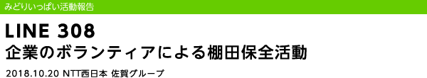 2018年10月20日(土)、NTT西日本佐賀グループは、佐賀市三瀬村中鶴(なかのつる)の棚田にて中鶴自治会の方々と共に「棚田の保全活動」として草刈りを行いました。