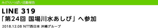 2018年12月8日(土)、NTT西日本沖縄グループは環境保全活動の一環として、「国場川水あしび実行委員会」主催の漫湖周辺の清掃活動に参加しました。