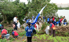今回で5回目の活動参加となり、沖縄グループの社員や家族、退職者の計82名が漫湖水鳥・湿地センターに集合し、漫湖周辺の空き缶やペットボトルなどのゴミ収集を実施しました。