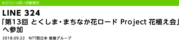 2018年9月22日(土)、NTT西日本徳島グループはみどりいっぱいプロジェクトの一環として、市とNPO法人「新町川を守る会」が主催している「第13回 とくしま・まちなか花ロードProject 花植え会」に参加しました。