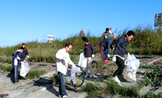 1999年にスタートし、今では100以上の企業・団体が参加し、100キロメートル近い吉野川の堤防や河川敷をきれいにしています。NTT西日本徳島グループの活動場所は、吉野川左岸河口から上流1,400メートル〜2,000メートル区間の堤防および河川敷600メートル区間です。