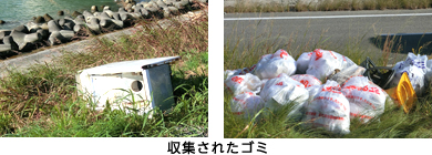 清掃場所が吉野川河口付近であることからたくさんの漂着したごみや不法投棄された家庭用廃棄物が収集されました。