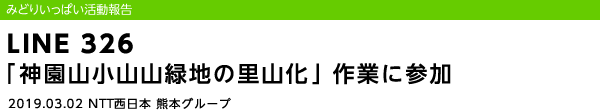 2019年3月2日(土)、NTT西日本熊本グループは熊本市東区の神園山小山山緑地(こおぞのやまおやまやまりょくち)で、里山化作業を実施しました。