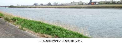 参加者がゴミ袋を片手に河岸へ下って清掃をはじめると、ゴミ袋はすぐ一杯になりました。作業を終えて周囲を見渡すと、開始前に比べて格段にすっきりと片付き、美しい風景が広がっていました。