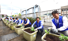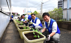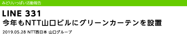 2019年5月28日(火)、NTT山口ビルにてプランターに苗を植え付ける「グリーンカーテン」の設置に、NTT西日本山口グループの社員をはじめ、総勢20名が参加しました。