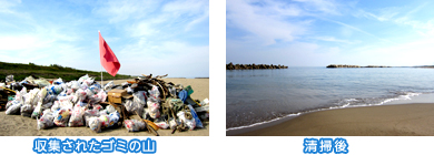 ごみは広範囲に散乱しており、大半が砂に埋もれてひどく汚れています。個人ではとても拾いきれる量ではありませんが、参加者が協力し合った結果、海岸の細かいところまでくまなくごみを回収することができ、作業が終わる頃には本来の美しい海岸風景がよみがえりました。