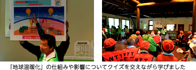 また、前回の活動では「森の大切さ(森の役目)」について小さな学習会が開かれました。今回は視野を広げ、「地球温暖化」の仕組みや影響、各個人にできる温暖化対策についてクイズを交えながら、参加者の皆さんで学びました。