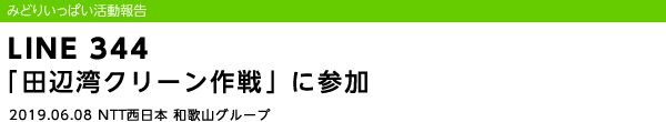 2019年6月8日(土)、 NTT西日本和歌山グループは、和歌山県田辺市主催の「田辺湾クリーン作戦」に参加しました。