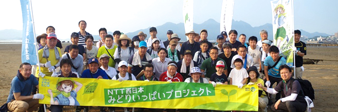 NTT西日本広島グループでは、今後も地域住民の方々と協力し合い、海岸や沿岸地域の清掃・美化活動に率先して取り組み、瀬戸内海の豊かな自然環境を後世へと大切に守り継いでまいります。