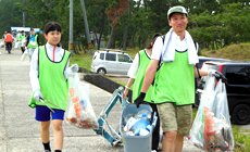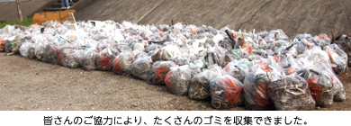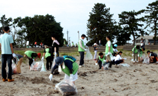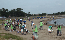 当日は晴天に恵まれ、地域のボランティアの方々を含めた総勢525名が早朝6時から約1時間かけてごみを拾い集め、本来の美しい海岸風景を取り戻しました。この活動を通して海岸を美化することが自然環境の保護になり、里海の恵みへと繋がっていくでしょう。