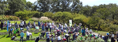 はじめにセレモニーが開催され、東山植物園園長からのご挨拶、園職員の方より作業手順のご説明、続いて参加者全員で写真撮影を行いました。