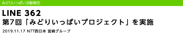 ホーム の中の 企業情報 の中の NTT西日本グループのサステナビリティ の中の みどりいっぱい活動報告 の中の LINE 362 第7回「みどりいっぱいプロジェクト」を実施