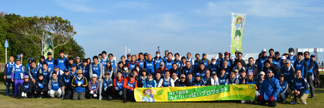 2019年11月17日(日)、宮崎市みやざき臨海公園に隣接した「阿波岐原(あわきがはら)森林公園」で、宮崎県緑化推進機構が主催する「水と緑の森林(もり)づくり」県民ボランティアの集いが開催され、「みどりいっぱいプロジェクト」の一環としてNTT西日本宮崎グループ各社や関係会社の社員とその家族、約120名が参加しました。