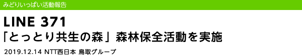 2019年12月14日(土)NTT西日本鳥取グループは、鳥取市福部町湯山で3回目となる「とっとり共生の森」森林保全活動を実施しました。