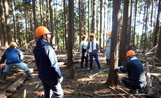 はじめに中勢森林組合より、木育的な見地から間伐作業の必要性などについてお話があり、参加者は森林保護活動を行う意義への理解を深めることができました。