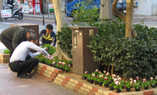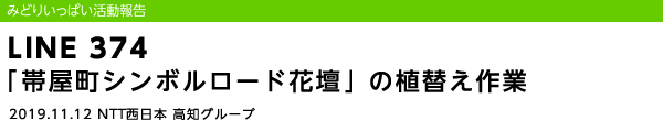 2019年11月12日(火)、NTT西日本高知グループは高知市中心部の帯屋町シンボルロードに設置されている花壇の植え替え作業に取り組みました。