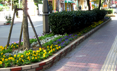 道路沿いに咲き誇る色とりどりの花が季節の訪れを報せ、通りを行き交う方の心を癒し和んでいただけるよう、その日を心待ちにしています。