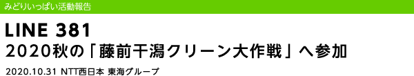 NTT西日本東海グループでは、今後も伊勢湾へのごみの流出を減らし、藤前干潟の生物多様性保全活動に積極的に参加し、美しく豊かな自然環境の維持に努めます。また来年度には以前のように多くの方が参加できることを願っております。