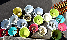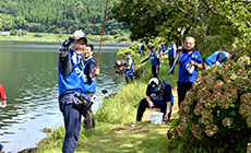夏休み期間中のため、参加者の中には元気な子どもたちの姿も多く見られ、ご家族で楽しそうに釣る方々や持参のルアーで黙々と集中して釣る方など、各々自由なスタイルで外来魚駆除に奮闘し、釣果は、2時間余りの活動でブルーギル(稚魚含む)214匹となりました