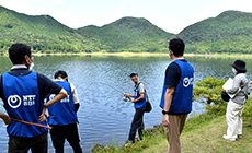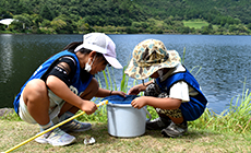 2021年7月31日(土)、鹿児島県の薩摩川内市(さつませんだいし)にある藺牟田池(いむたいけ)自然公園において、「2021年度外来魚駆除活動」が開催され、NTT西日本鹿児島グループの社員とその家族など54名が参加しました。