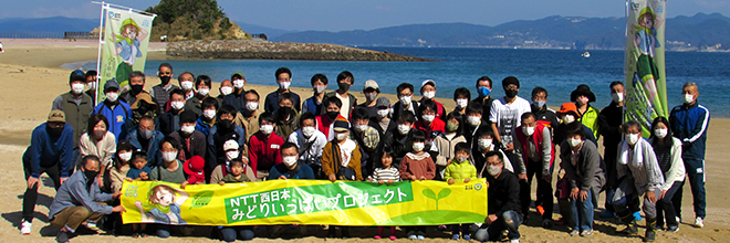2021年11月3日(水)、NTT西日本長崎グループは社員の環境保護活動への理解を深めることを目的とした「NTT西日本みどりいっぱいプロジェクト」の一環として、「伊王島海岸清掃」を開催いたしました。