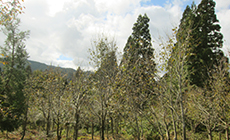 今回白山市白峰エリアでは、2014年に植樹した区間のブナの木の枝打ちを行いました。この地域は冬になると積雪5メートル以上になることもあり、ブナの木の枝打ちは雪の重さによって樹木が強く押し曲げられるのを防ぐ作業です。小雨の降る中、参加者はお互いの安全を確認し合いながらノコギリを使って、成長過程で育ちの悪い枝や強く絡まったツルなどを除去しました。結果、一時間後には林の中が明るく見通しも良くなりました。この地域の森林は、手取川ダムの源流に繋がっています。その水源は私たちの暮らしに直結する生活用水となり、再生可能エネルギーに変換されています。私たちは自然からの恩恵を得て生活していることを感じることができました。