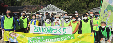 2021年10月23日、10月30日、11月6日と3週間にわたり開催された、公益社団法人石川の森づくり推進協会主催の「石川の森づくり」に、NTT西日本北陸グループの社員とその家族など総勢35名が参加しました。