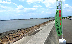 活動場所はこれまで庄内川・新川河口付近にある中堤会場でしたが今回は、さらに河口付近で清掃に取り組みました。