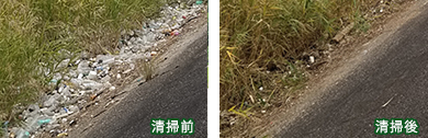 皆さんが汗をいっぱいかき悪臭にも耐えながら黙々と清掃活動に励んだ甲斐もあり、休憩時間を挟んで1時間半ほどの作業を終える頃には、見違えるほどきれいな風景へと変わりました。
