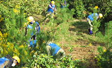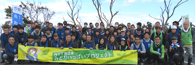 NTT西日本鳥取支店が2018年に鳥取県・鳥取市と協定を締結した「みどりいっぱいプロジェクト」の一環で、2018年11月にクロマツ苗を植栽して以降、毎年春と秋に森林保全活動を行っています。
