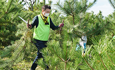 「かほく市大崎エリア」では海岸林の再生をめざし、クロマツの植樹や下草刈りなどの保育活動を継続的に行っており、今回は植樹から6年目のクロマツの枝打ちを行いました。