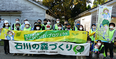 ホーム の中の 企業情報 の中の NTT西日本グループのサステナビリティ の中の みどりいっぱい活動報告 の中の LINE 416 石川の森づくりに参加