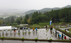 当日はあいにくの雨の中、参加者は早朝から阿蘇水掛の棚田に集合しました。