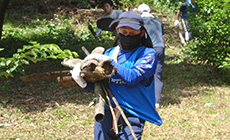 続いて、「地球緑化の会」の理事・事務局長からは「朝早くからこんなに多くの方々にご参加いただき、感謝しております。くれぐれもケガのないよう十分に配慮しながら取り組んでください」とのお言葉をいただきました。