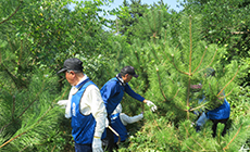 この活動は春と秋に年2回行われ、鳥取グループがSDGsへの貢献の意味も込めて、2018年11月に植栽したクロマツの苗(200本)が日光や土壌からの栄養分を十分に吸収し、大きく成長するために下草刈りなどに取り組んでいます。